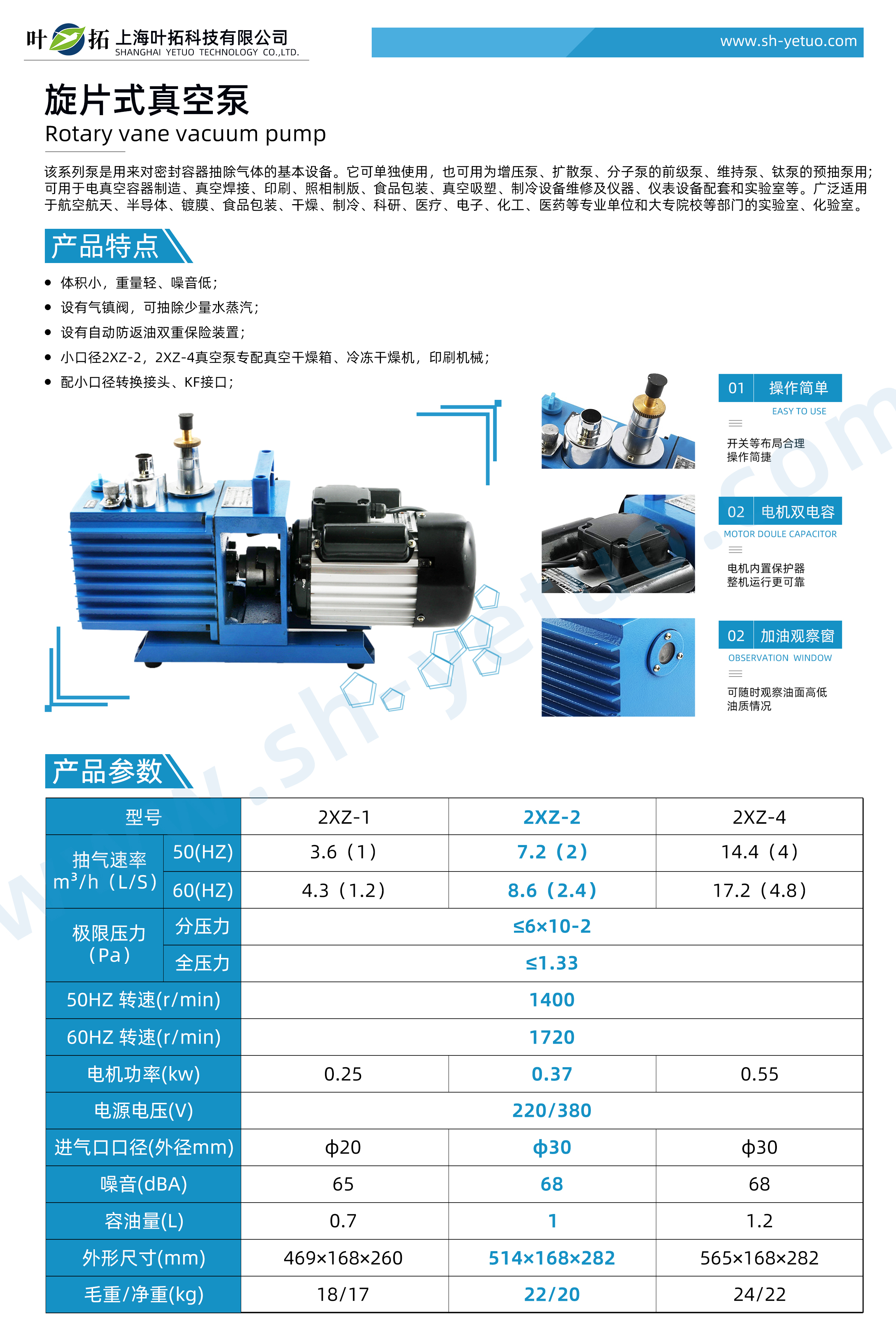 葉拓 2XZ-2 國產(chǎn)油旋片式真空泵詳細(xì)參數(shù)