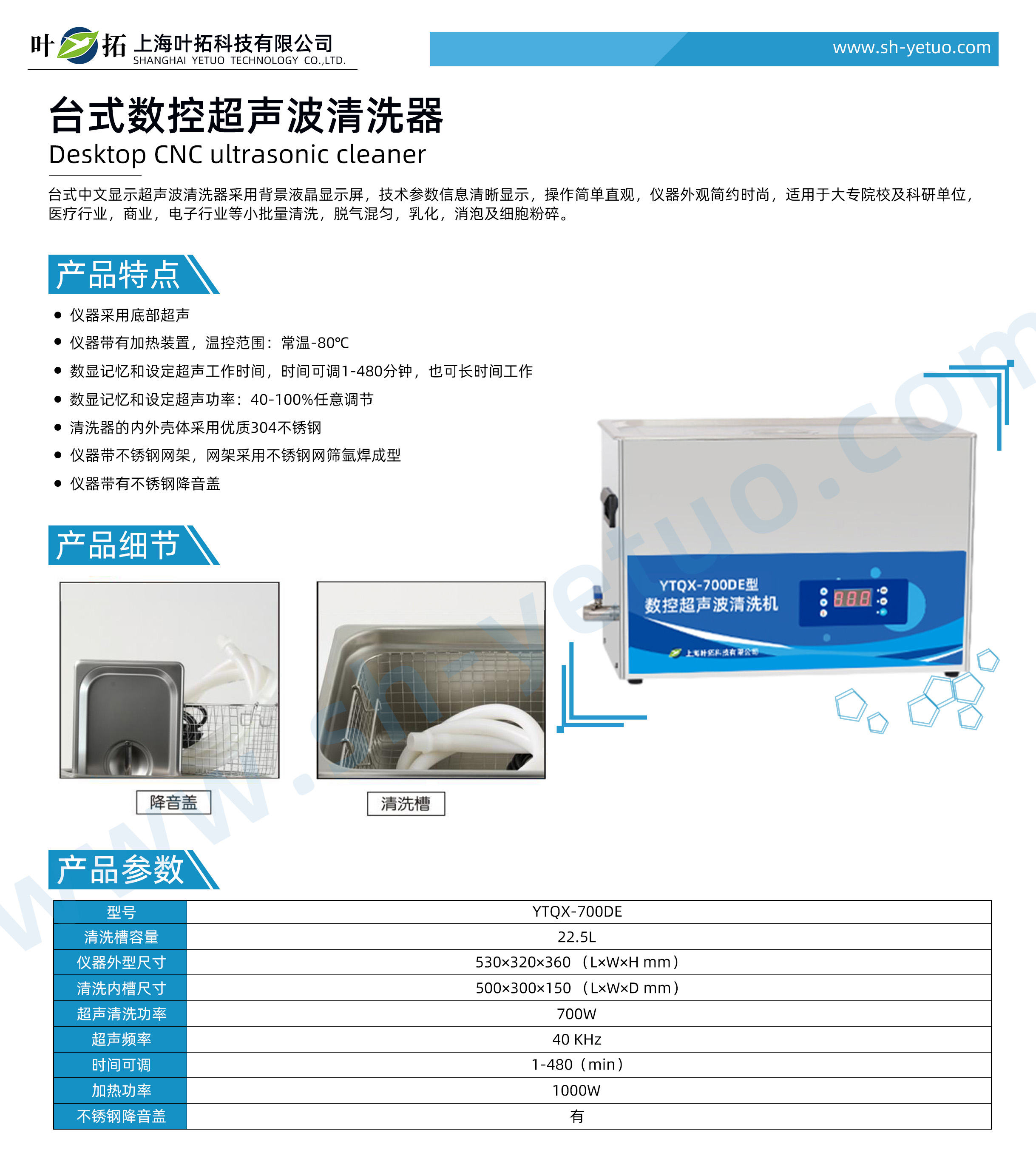 葉拓 YTQX-700DE 臺(tái)式數(shù)控超聲波清洗機(jī)詳細(xì)參數(shù)