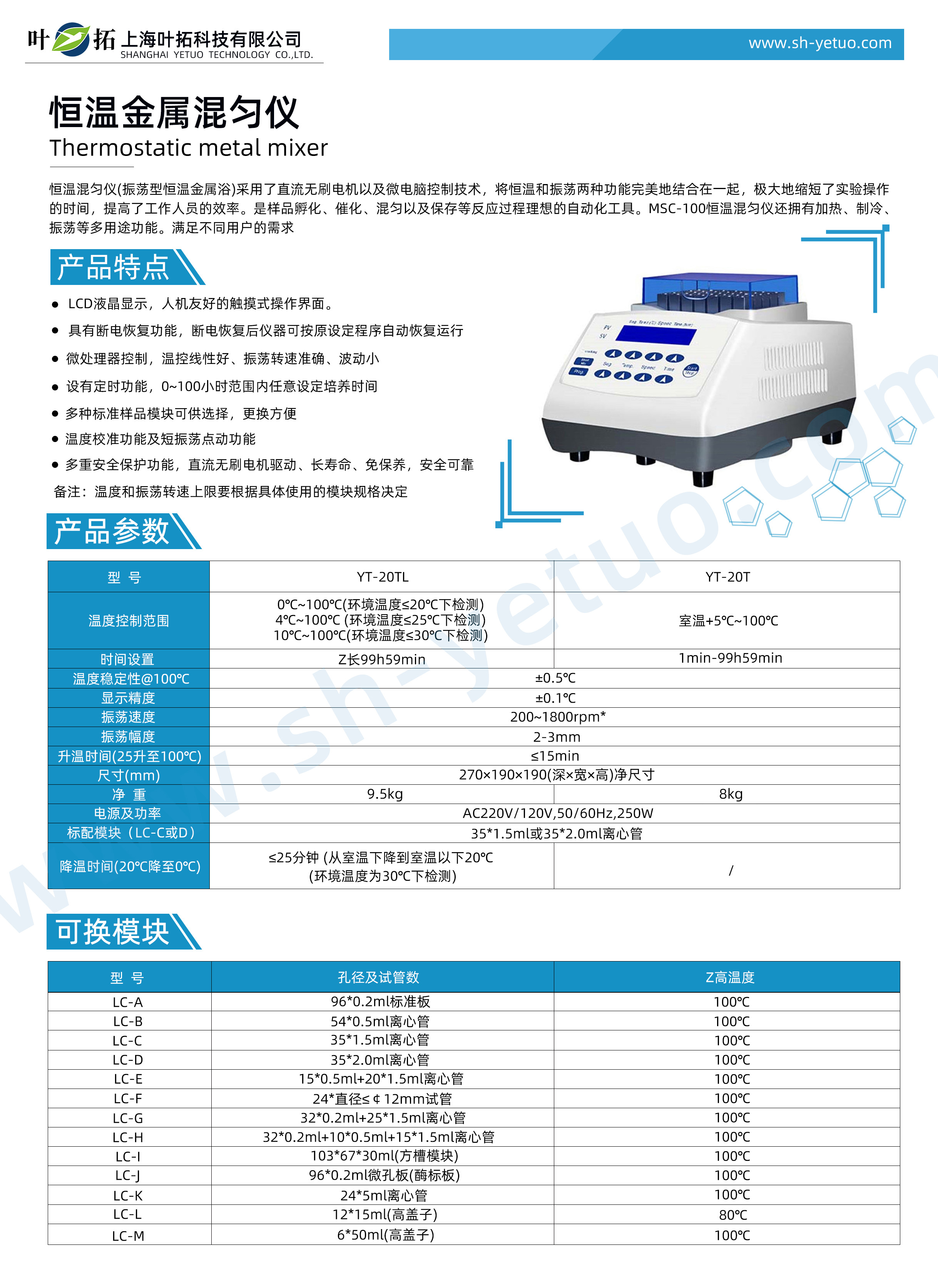葉拓 YT-20T 恒溫金屬混勻儀詳細(xì)參數(shù)