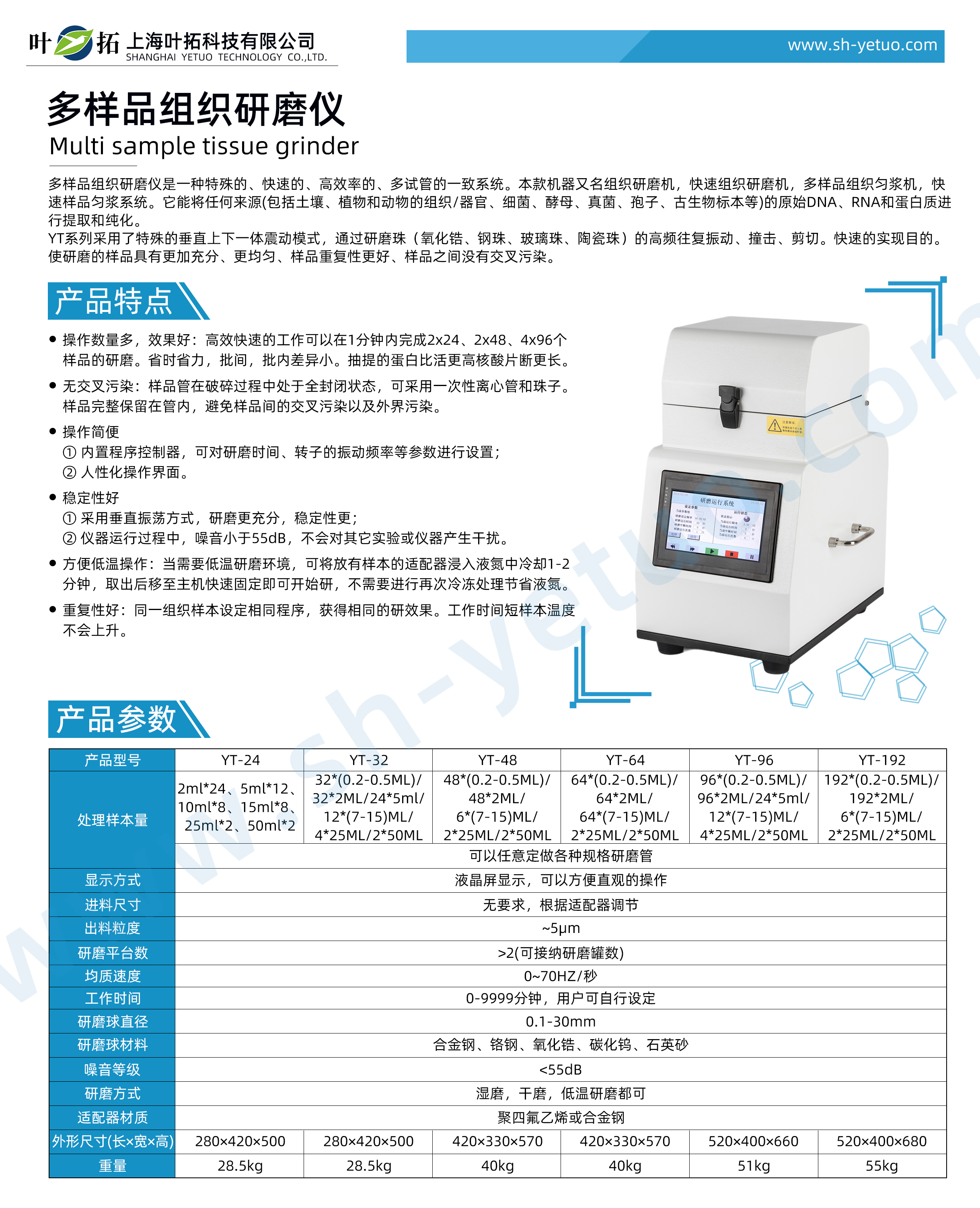 葉拓 YT-192 組織研磨儀詳細參數(shù)