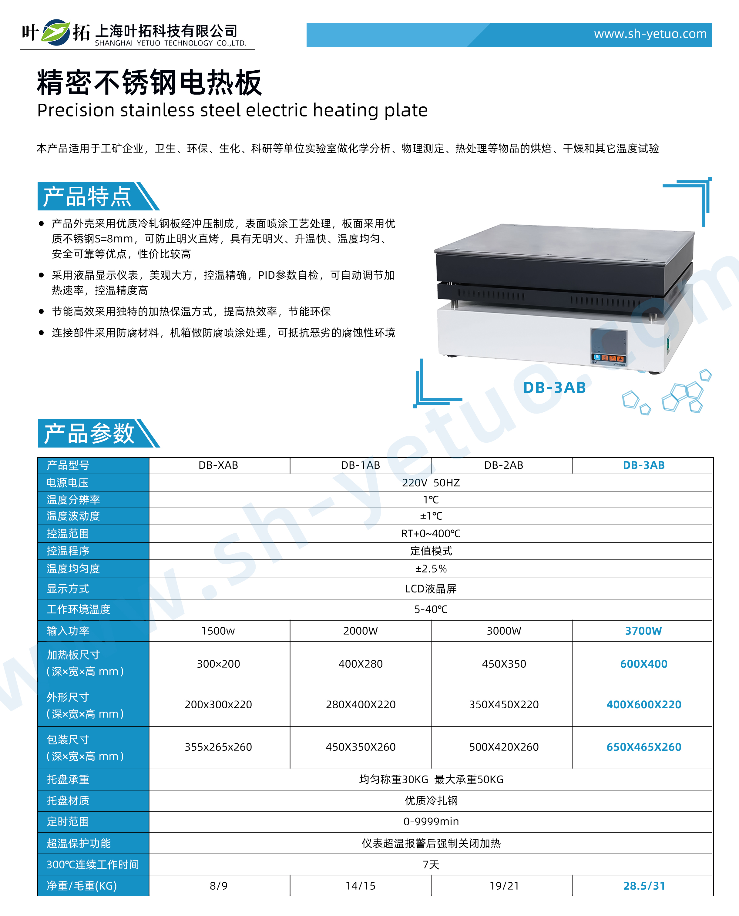 葉拓 DB-3AB 精密不銹鋼電熱板詳細參數(shù)